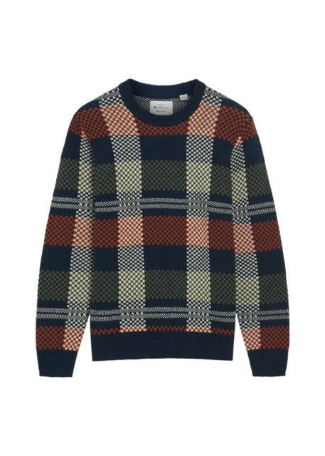 Made from a wool blend, this regular fit jacquard check crew features a Ben Sherman branded woven label on the side seam.