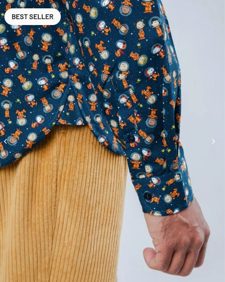 Lleva tu estilo a la órbita con la camisa Peanuts Astronaut, un básico azul suave hecho de algodón orgánico. Su corte relajado y el divertido estampado de astronauta reflejan tu espíritu aventurero, ya sea paseando por la ciudad o en compañía de amigos. Producida éticamente, es una elección estelar para tu día a día.