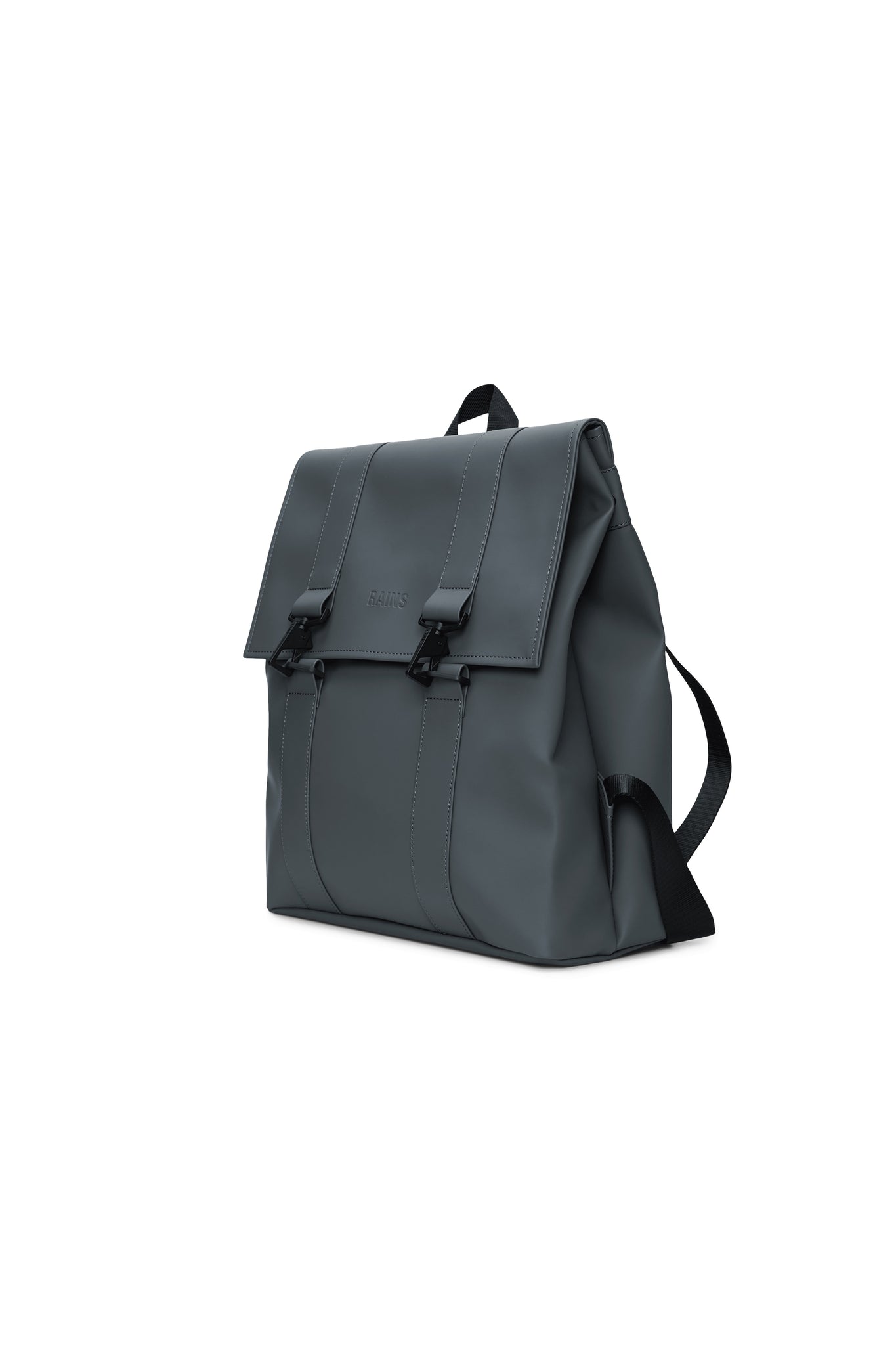 MSN Bag está confeccionada en el tejido de PU característico de Rains, diseñado para ofrecer robustez en el transporte, durabilidad y un suave acabado.