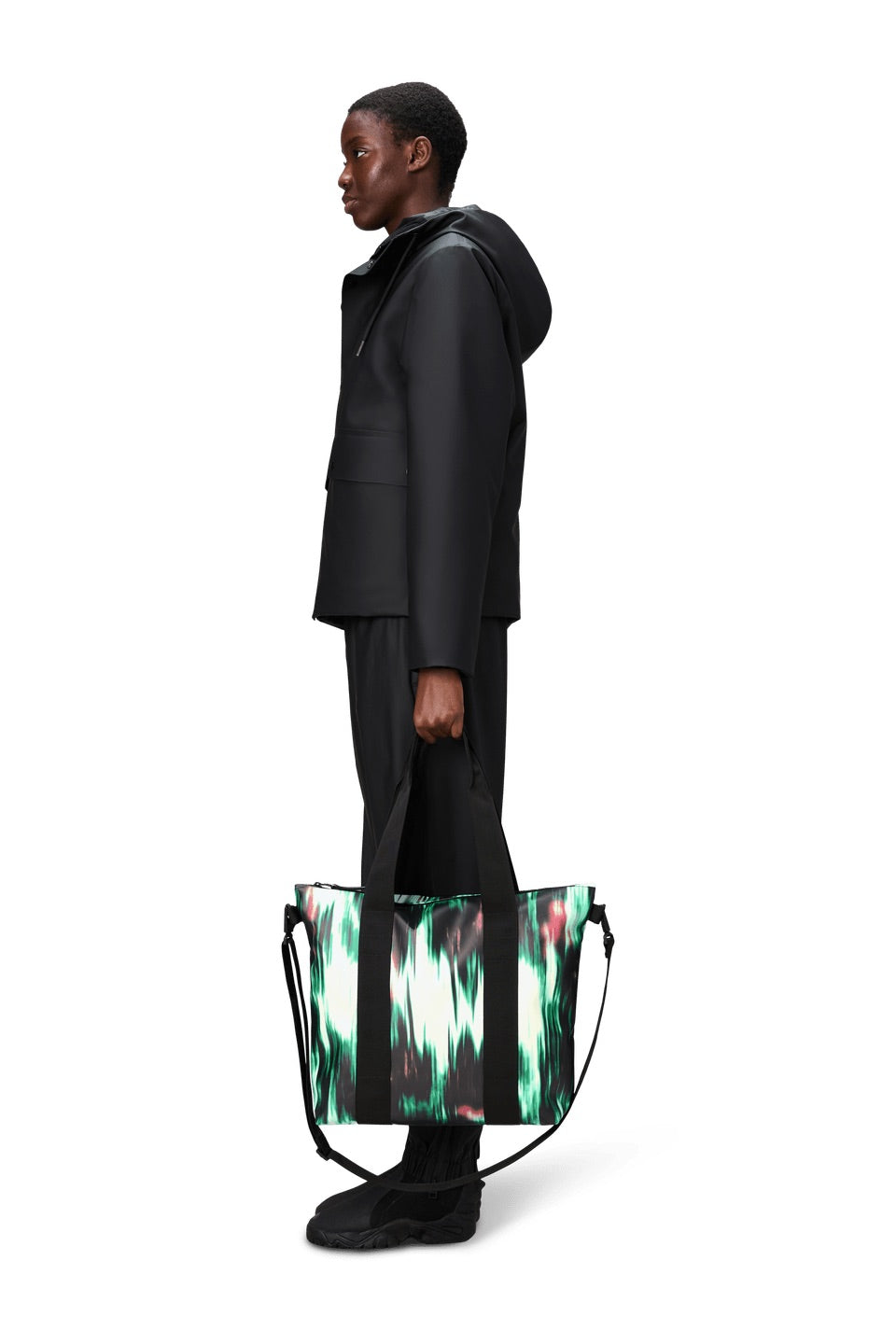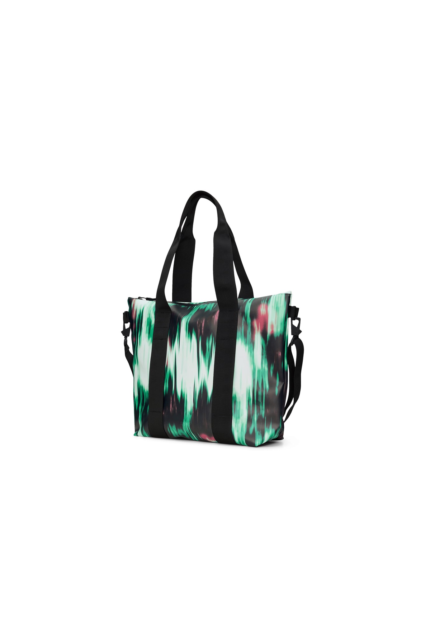 Tote Bag Mini, confeccionado con el tejido de poliuretano impermeable característico de Rains, ofrece durabilidad, resistencia al transporte y un suave acabado.